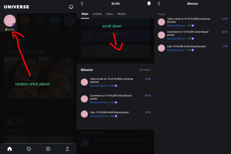 Using any hashtags with names from the aforementioned groups (ex. #Yeonjung or #STARSHIP or #UNIVERSE)
